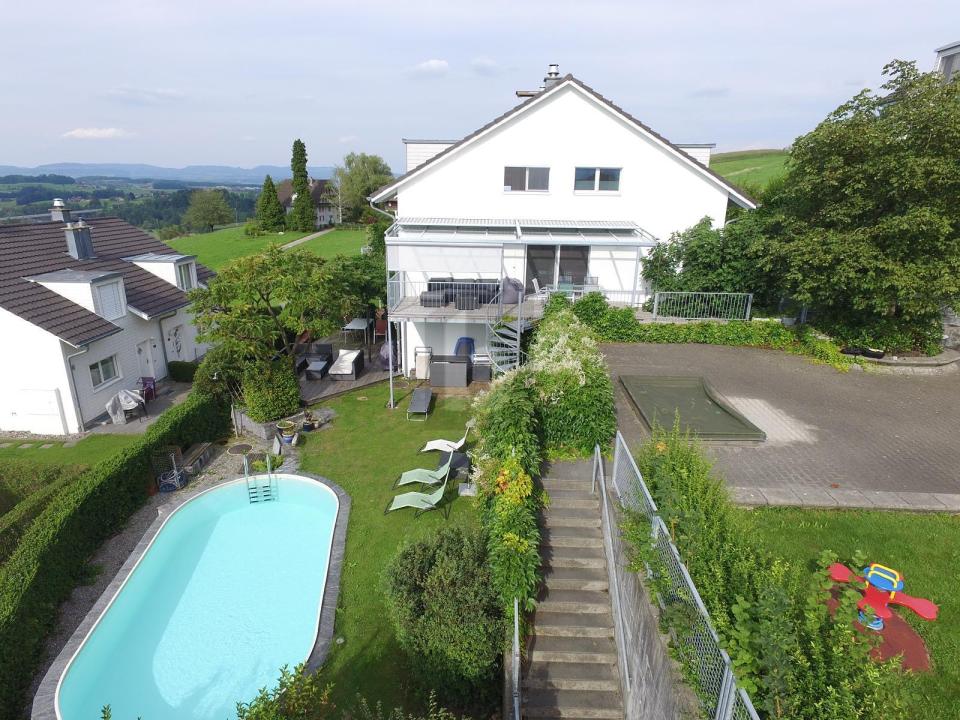 Das Haus erstreckt sich auf drei Etagen. Im Erdgeschoss befinden sich der Wohn- Essbereich, mit Küche und Gäste-WC, sowie der Zugang auf die gedeckte Terrasse und der Gemüsegarten. Im Untergeschoss befinden sich zwei Zimmer, das zweite Bad, die Waschküche, Keller, sowie der Zugang zum Garten mit Pool. Im Obergeschoss befindet sich das Bad mit Dusche, sowie drei Schlafzimmer. Der Parkett im Wohn-Esszimmer und im Korridor sorgt für ein stimmiges Wohnklima. Auf der überdachten Terrasse mit Veranda, geniessen Sie direkte Sicht auf den Pilatus und das Reusstal. Im DG sind drei Zimmer, sowie ein Badezimmer mit Dusche/WC und Doppellavabo. Ein Schlafzimmer verfügt über eine eingebaute Holzgalerie. Dieses BETTERHOMES-Angebot zeichnet sich durch folgende Vorteile aus: