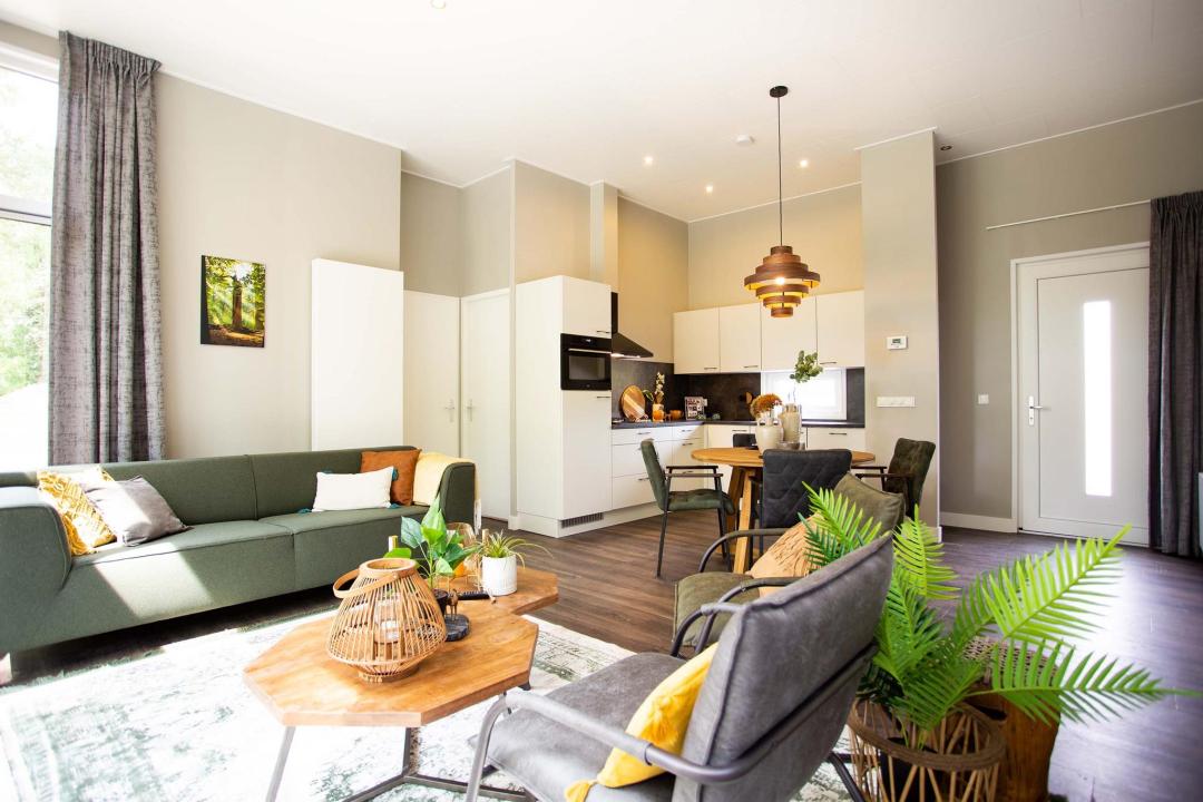 <ul><li>Parkeerplaats bij de accommodatie (1 auto).</li><li>Tuinmeubilair beschikbaar.</li><li>Sauna in de tuin.</li><li>Buitendouche.</li><li>Spa (jacuzzi).</li></ul>Houd er rekening mee dat de afbeeldingen van de huizen alleen ter illustratie dienen. Er kunnen kleine ontwerpverschillen zijn, maar alle accommodaties hebben dezelfde indeling en uitrusting.