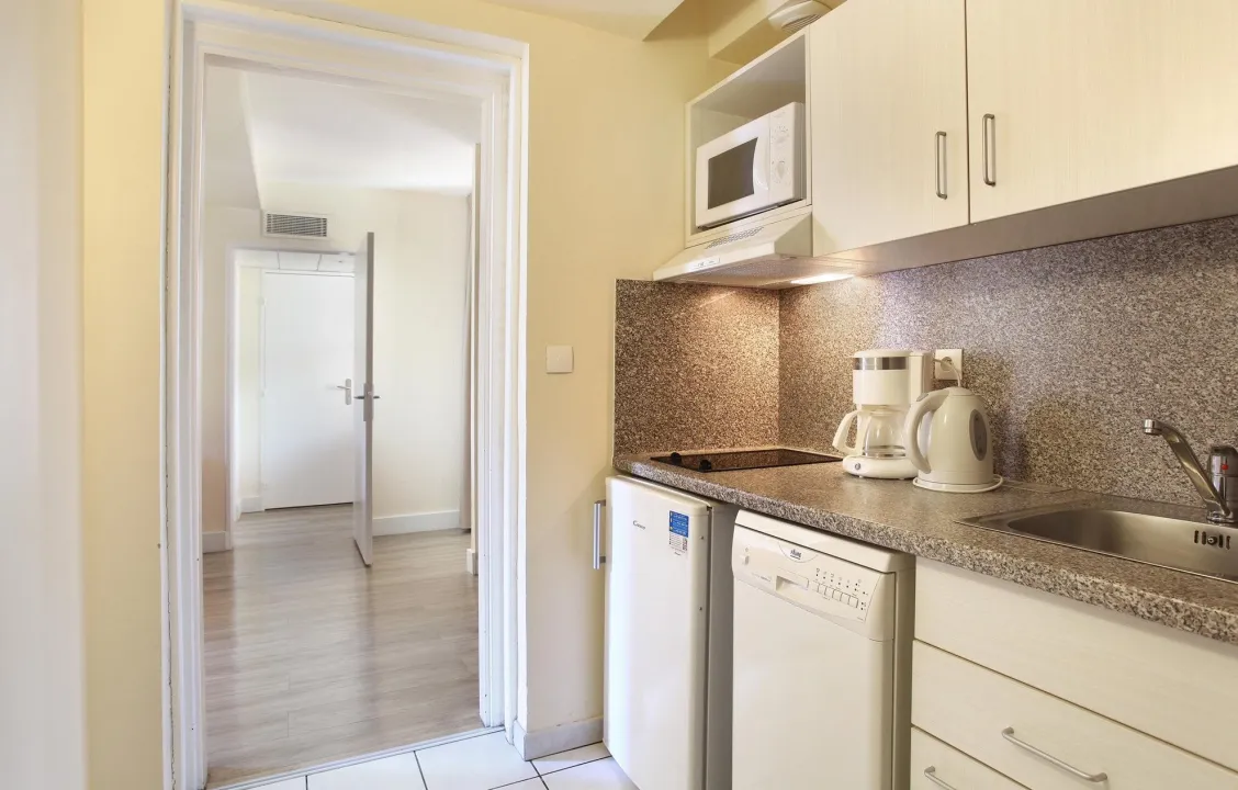 Де аппартементен, волледиг гереновеерд ин 2013, ван хет студё-аппартемент воор 2 персонен тот хет 2-камер аппартемент воор 4 персонен, зиjн аллемаал уитгеруст мет еен ингериcхте кеукенхоек (витрокерамисcхе коокплатен, коелкаст, магнетрон ен ваатwассер (аллеен ин де 2) ин де аппартементен ингериcхте камерс) ен еен бадкамер. Алле аппартементен зиjн воорзиен ван аирcондитёнинг ен зиjн уитгеруст мет еен флатсcреен-тв, еен клуисjе, еен телефоон ен гратис WиФи.Студё 2 персонен (онгевеер 22 м²)